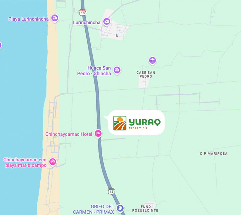 YURAQ es un condominio campestre de 83 lotes independizados con habilitación urbana, ubicado en el km 202 de la nueva Panamericana Sur, a solo 3 minutos del Boulevard Playa del Carmen en Chincha.